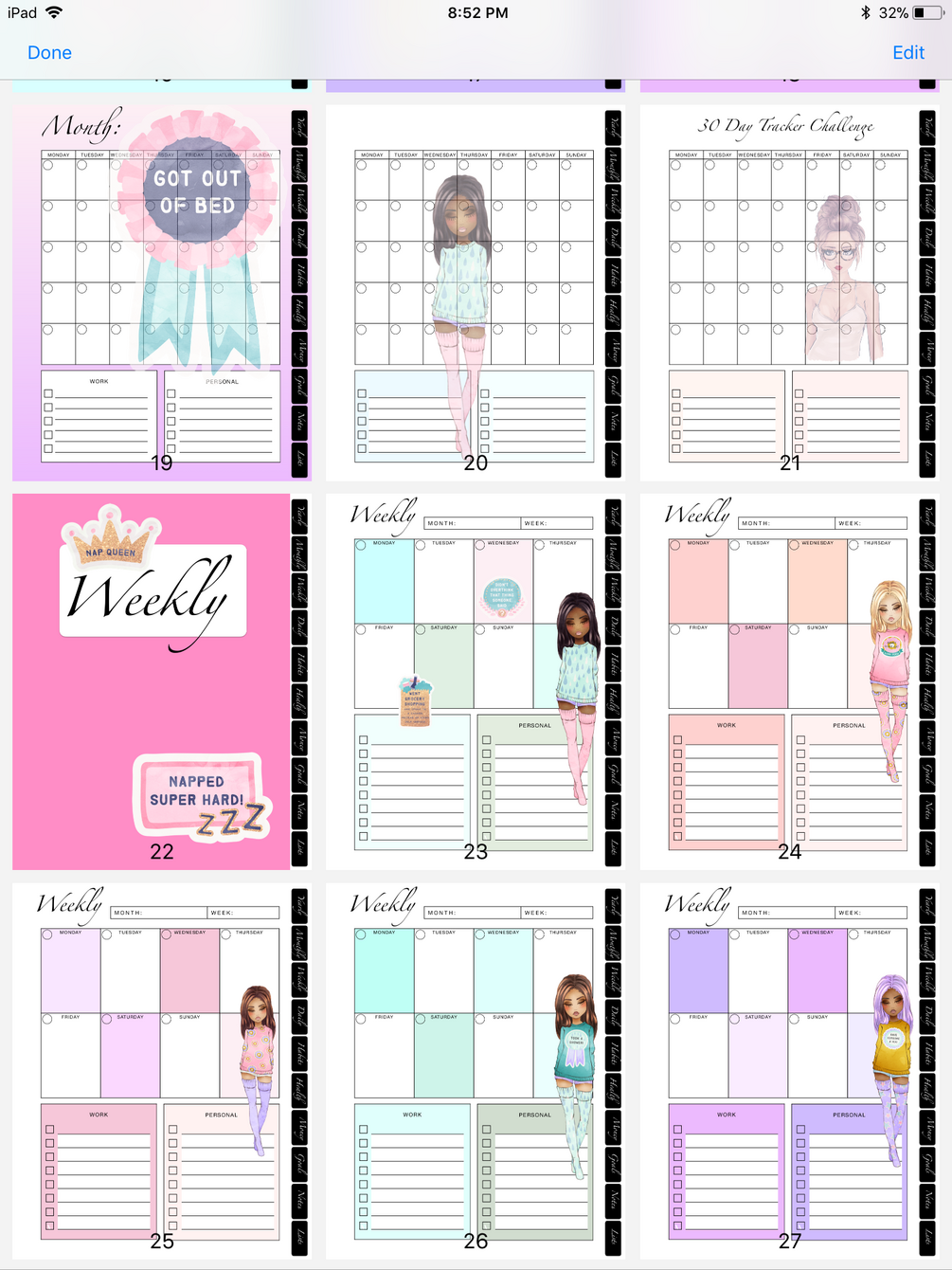 Bonus: 30 day Challenge / Tracker in Glam Girl drawing.