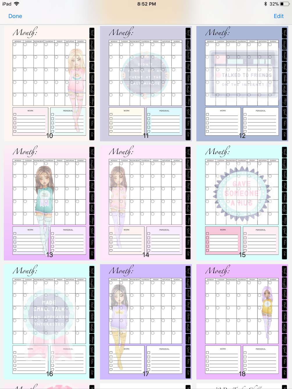 Monthly (12 styles of pages to choose from or mix it up!)