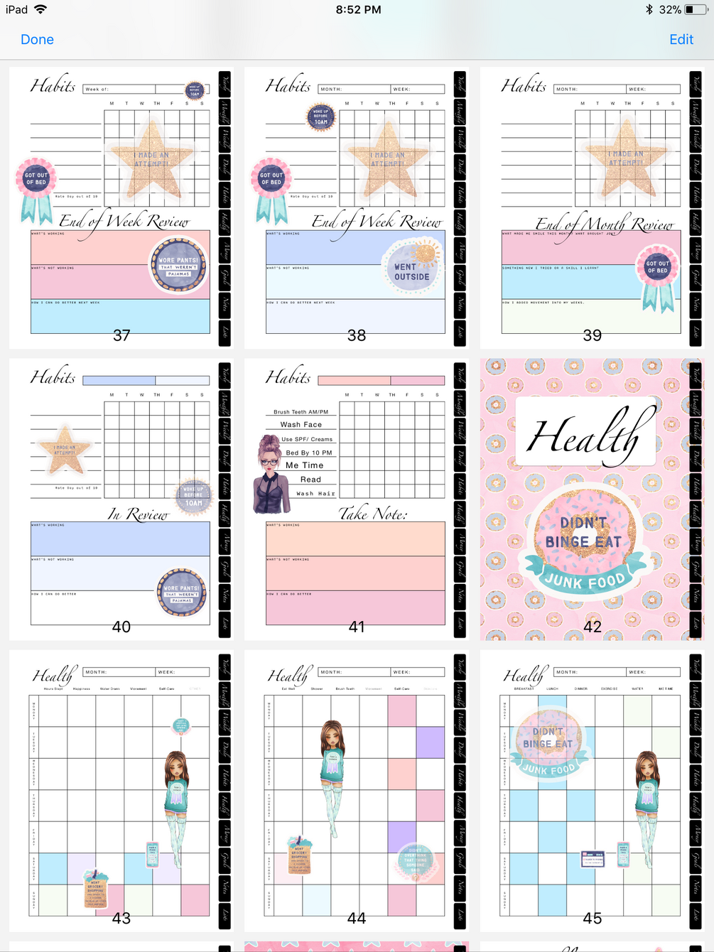 Bonus: 9 full color, gorgeous pages for IRL Dashboards or/ and Worksheets. Plus, 2 pages of self care and Glam stickers. (They are also sold separately for $25.00/ set of 11 pages. You can buy it on it's own here: https://gumroad.com/products/SYwUk/edit if you want.)
