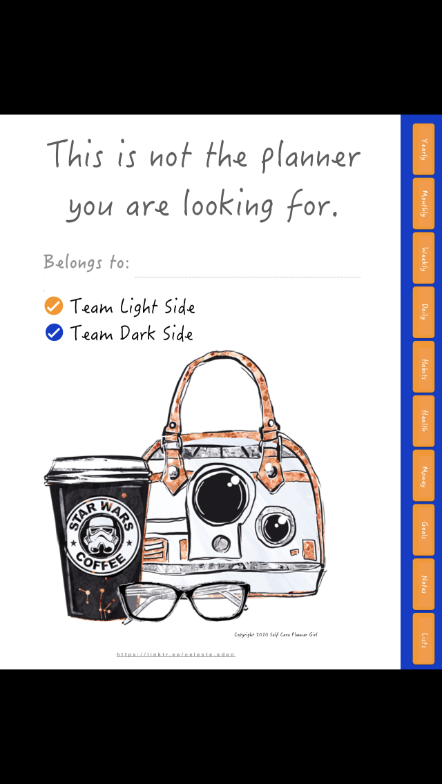 "May the 4th be with you," is coming up! Be prepared with this feminine Star Wars inspired art, in this gorgeous digital planner with hyper linked tabs!